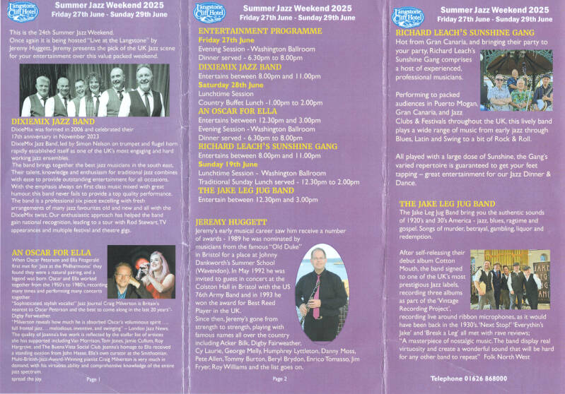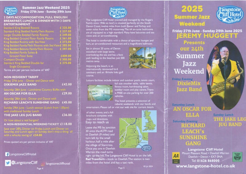 2025 June 27th to 29th Jazz weekend at the Langstone Cliff Hotel in Dawlish Warren